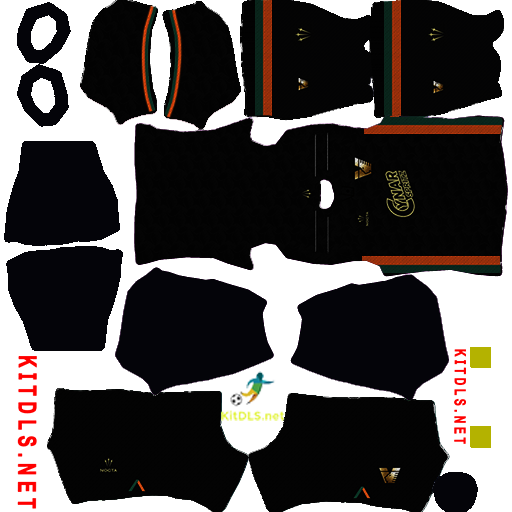 El uniforme de Venezia Dream League Soccer se caracteriza por sus colores vibrantes, principalmente el verde, negro y naranja. Este diseño tiene una gran identidad, manteniendo los colores que representan al club. ¡Tu equipo tendrá un look espectacular dentro de Dream League Soccer con estos colores vibrantes!